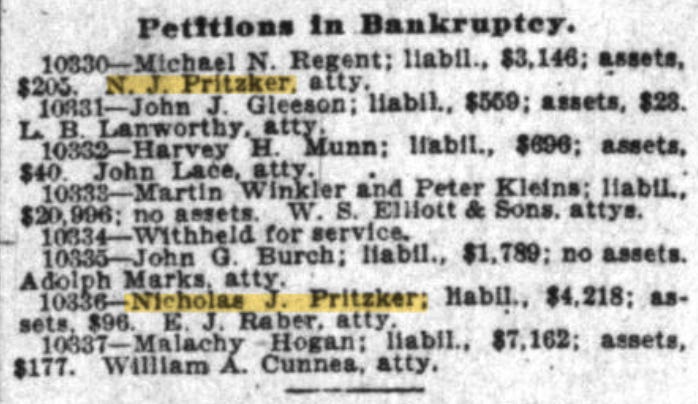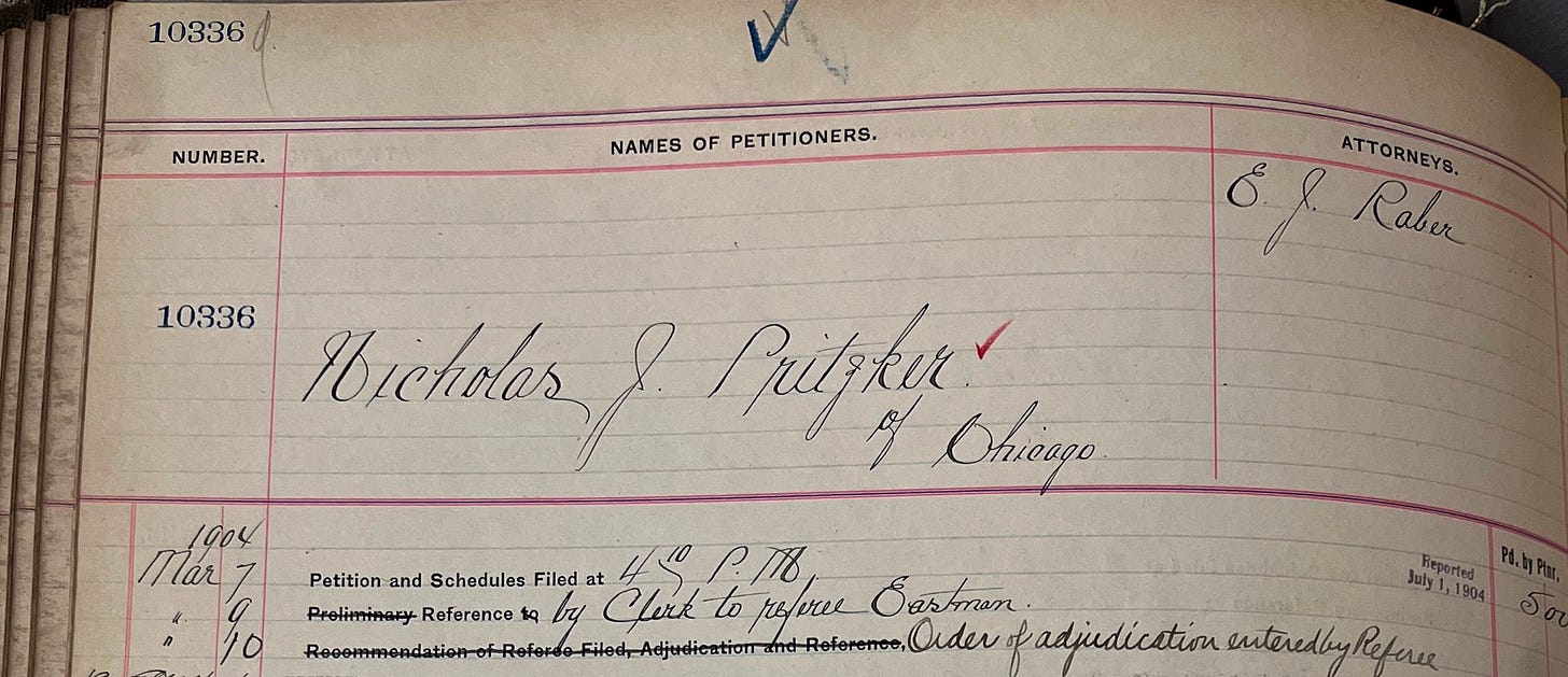 While he doesn’t mention it in his book, Nicholas ultimately filed for bankruptcy in 1904 (while also representing someone filing for bankruptcy).